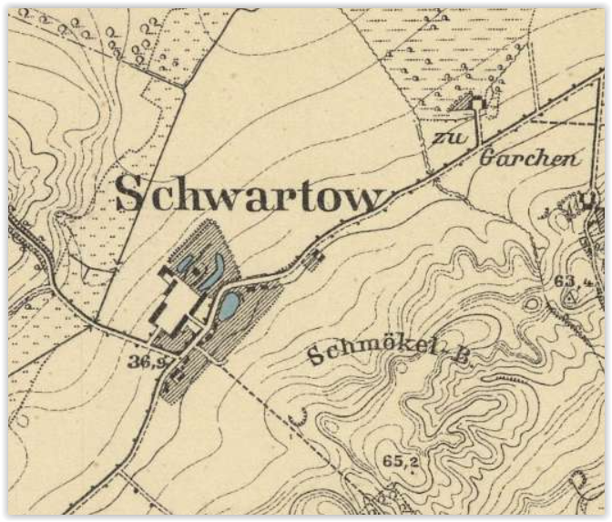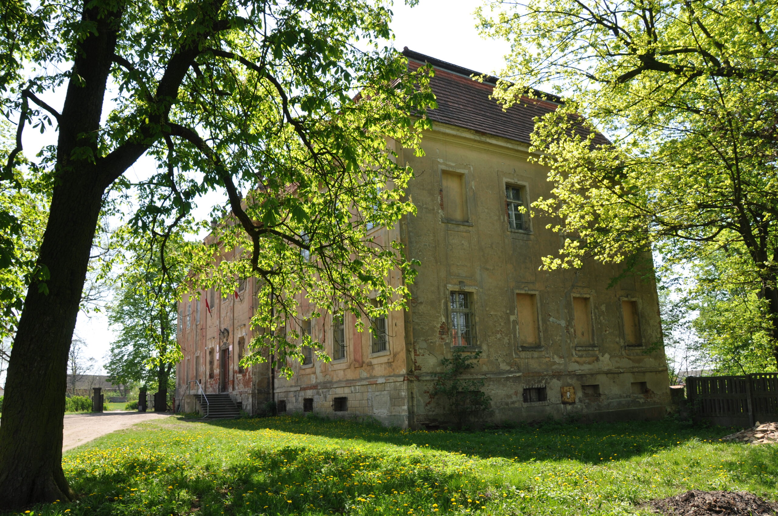 Na terenie wsi założenie pałacowo-parkowe oraz folwarczne. Pałac zbudowany w 1859 roku przez rodzinę von Bonin, przebudowany na początku XX wieku. Zbudowany na planie prostokąta, z charakterystyczną cylindryczną basztą od północy. Obok park o pow. 49ha zaprojektowany przez Petera Josepha Lenne. W sąsiedztwie zabudowania gospodarcze- obora, owczarnia, stodoła oraz gorzelnia. Obecnie własność prywatna.