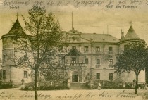 Na północ od zamku-pałacu położony był folwark. Po założeniu pozostały budynki dawnej gorzelni, wszystkie w ruinie. Całość otoczona murem z bramą wjazdową.
