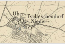 Wieś położona w gminie Złotoryja powiatu złotoryjskiego. Po raz pierwszy wzmiankowana w 1300 roku(Czeskindorf). W 1623 roku wieś należy do rodziny von Geisler. W 1626 roku wieś należała do rodu von Zedlitz. W 1650 własność rodu von Baudiss(Baudissin). W 1704 roku należy do rodziny von Birckholtz. W 1789 roku w części górnej mowa o siedzibie dworskiej, folwarku należące do rodziny von Hofmann. Część dolna składała się z dwóch majątków i folwarków należących do rodziny Hapel. W 1845 roku część Górna składała się z z dwóch części należące do kupca Wilhelma Geier i radcy karnego Kaulfuss. Dolna część składała się z dwóch części należących do braci: Wilhelma Hapel i Juliusa Hapel. W 1886 roku część górna należała do spadkobierców rodziny Geier i obejmował 152ha a część dolna podzielona na część górną, która należała do Emila Hapel i obejmowała 74 ha a część dolna należała do Rudolfa Hapel i obejmowała 66 ha. W 1894 roku część górna należała do Christopha Geier i obejmowała 166ha, a część dolna składająca się z dwóch części i część górna należała do Otto Grau i obejmowała 74ha a część dolna należała do Rudolfa Hapel i obejmowała 74ha. W 1898 roku część górna należała do Christopha Geier i obejmowała 167ha a część dolna podzielona na część górną należącą do Gustava Faulwasser i obejmowała 74ha a część dolna należała do Rudolfa Hapel i obejmowała 74ha. W 1902 roku majątek górny należał do Christopha Geier i obejmował 167ha, a część dolna podzielona część górną należącą do Gustava Faulwasser i obejmował 74ha a część dolna należąca do Rudolfa Hapel o obejmowała 74ha. W 1905 roku część górna należała do wdowy Anny Geier, z domu Vober i obejmował 167ha a część dolna składająca się z dwóch części, część górna należała do Gustava Faulwasser i obejmowała 74,7ha a część dolna należała do Rudolfa Hapel i obejmowała 66ha. W 1909 roku część górna należała do Ernsta Lommel i obejmowała 167ha, a część dolna podzielona na dwie części gdzie część górna należała do Gustava Faulwasser i obejmowała 74,7ha a część dolna należała do Rudolfa Hapel i obejmowała 66 ha. Jak podaje Spis rodzina Hapel siedziała tu od 300 lat. W 1917 roku część górna należała do Ernst Lommel i obejmował 167ha, a część dolna składająca się wcześniej z dwóch części została połączona w jeden majątek należący do Gustava Faulwasser i obejmowała 139,5ha. W 1921 roku część górna należała do Ernsta Lommel i obejmowała 167ha a dzierżawcą był Gustav Carl. Część dolna należała do Arno Eydam i obejmowała 139,5ha. W 1930 roku majątek w części górnej należał do Ernsta Lommel i obejmował 167ha a w części dolnej należał do Arno Eydam i obejmował 141ha. W 1937 roku część górna należała do Ernsta Lommel i obejmowała 167ha a część dolna należała do Arno Eydam i obejmowała 141ha.