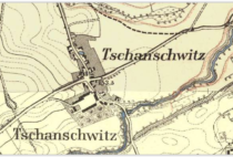 Wieś położona w gminie Strzelin powiatu strzelińskiego. Po raz pierwszy wzmiankowana w 1305 roku(Czanschicz). W 1700 i 1750 wieś należała do rodziny von Vippach. W 1744-1814 majątek należał z przerwami do baronów von Richthofen. W 1750 roku dobra należały do rodziny von Prittwitz h. Wczele. W 1757 roku dobra zakupił baron Gustav Wilhelm von Richthofen dla syna, barona Ernsta Wilhelma Praetoriusa od Georga Friedricha von Wentzky. W 1763 roku odkupiony majątek baron Wilhelm von Richthofen sprzedał Georgowi Juliusowi von Prittwitz-Lorzendorf. Po śmierci Georga Juliusa von Prittwitz, wdowa po powtórnym wyjściu za mąż za kapitana barona von Beneckendorf, zapisała majątek swojemu zięciowi baronowi Gottliebowi Ferdinandowi Konradowi von Richthofen w 1774 roku, który w 1770 roku ożenił się z Wilhelmine Juliane Charlotte von Prittwitz(12.02.1749), córką Georga Juliusa von Prittwitz. Miał z nią pięcioro dzieci: dwóch synów zmarło w dzieciństwie, dwie córki: Friederike zmarłą w wieku 9 lat, Johannę Luisę Ferdinande ur. 1777 i syna Samuela Friedricha Wilhelma Gottlieba(ur. 1781). W 1779 roku ponownie dobra należały do rodziny von Prittwitz h. Wczele. Przyrodnia siostra Gottlieba Ferdinanda Konrada w 1788 roku wyszła za mąż za Ernsta Bernharda Ferdinanda von Studnitz i prawd. w tym samym roku sprzedał mu wieś. Do 1804 roku właścicielem dóbr był von Mutius, od którego w tym roku majątek odkupił baron Wilhelm von Rischthofen. Z powodu zniszczeń majątków należących do barona Wilhelma podczas działań wojennych prusko-francuskich i z tym związanych późniejszych kłopotów finansowych sprzedał majątek baronowi von Kӧckritz. W 1813 roku majątek zakupił Ernst Heinrich von Mechau. W 1830-1845 majątek należał do rodziny von Kockow. W 1845 roku dobra zakupił Christian Zirpel. W 1876 roku majątek należał do Alberta Rosenthal. W 1886 roku majątek o areale 230ha należał do Benno Margwald. W 1894 dobra o powierzchni 230 ha należały do Benno Marckwald(Margwald). W 1898 majątek posiadał baron Karl von Richthofen-Damsdorf i obejmował 142ha. W 1902 roku majątek o areale 141,5ha należały do Benno Markwald(Marckwald, Margwald). W 1905 i w 1909 roku dobra ponownie w rękach barona Karla von Richthofen a dobra obejmowały 142ha. W 1917 roku majątek w rękach wdowy Hildegardy Brossling a dobra obejmowały 232ha. W 1921 i w 1926 roku dobra w rękach spadkobierców po Dr Fritzu Brossling a majątek obejmował 232ha. Dzierżawcą był Bern. Rother. W 1937 roku majątek należał do Hansa Joachima Brӧssling i obejmował 232 ha a dzierżawcą był Bern. Rother.