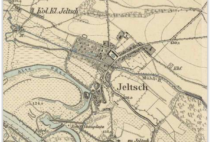 Po raz pierwszy wzmiankowany w 1245 roku. Początkowo własność biskupów wrocławskich. Około połowy XIII wieku domena książęca. Po 1260 roku książę Władysław(1237-1270) w zakolu Odry wybudował dwór obronny, później rozbudowany i wzmocniony przekształcając dwór w zamek obronny. Miejsce to znane jest z porwania młodego księcia Henryka IV Probusa w 1277 roku. Od 1329 roku Jelcz stanowił lenno rodów rycerskich. W 1352 roku należał do Hansa i Heinza von Borschnitz. Przed 1380 rokiem należał do rodu von Prittwitz. Od 1433 roku należał do księcia oleśnickiego i biskupa wrocławskiego Konrada IV(1380/1390-1447). W 1452 roku Jancke von Kottulinsky(zm.po 1460) odkupił Jelcz od biskupa wrocławskiego. Jancke von Kottulinsky z N. von Borschnitz miał dwóch synów, którzy posiadali Jelcz do 1507 roku. Sam zamek około 1450 roku zajął Johann von Borschnitz, który trudnił się rozbojem. W 1488 roku jako właściciel Jelcza wymieniony był Heintz von Borschintz-Jeltsch. W 1508 roku Jelcz zakupił Conrad Sauermann, mieszczanin wrocławski, nobilitowany w 1550 roku. Przyjęli początkowo nazwisko von Saurma, później von Saurma-Jeltsch. W 1569 roku dobra w rękach braci: Achatiusa, Hansa i Valentina von Saurma. W 1596 wymienieni Konrad i Valentin von Saurma. W 1734 roku własność barona Johanna Antona von Saurma. W 1845 roku właścicielem był hrabia Johann Gustav von Saurma-Jeltsch. W 1886 roku dobra w rękach syna Johanna Gustava, hrabiego Gustava. Przed 1894 rokiem majatek w posiadaniu hrabiego Johannesa von Saurma-Jeltsch(1857-1937). Był ożeniony z Marielisą von Radowitz.