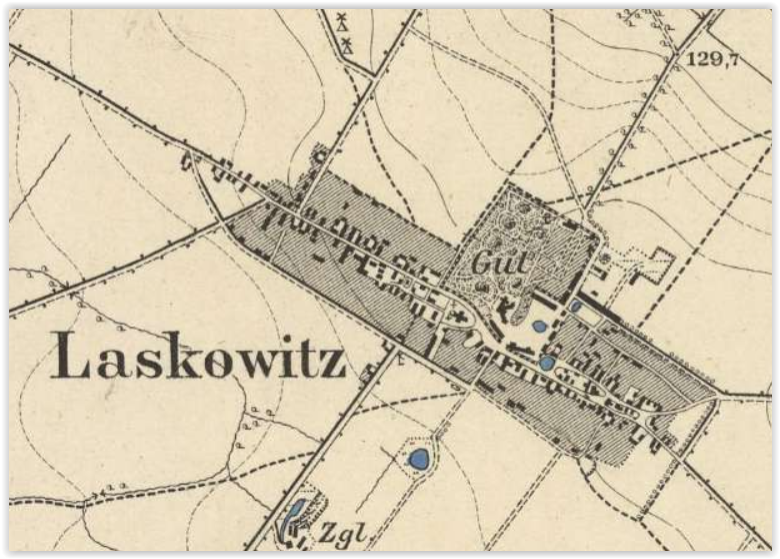Renesansowy dwór z 1558 roku, przebudowany w 1797 roku a następnie w 1886 roku po pożarze. Obecnie właścicielem jest Urząd Miasta i Gminy Jelcz-Laskowice.