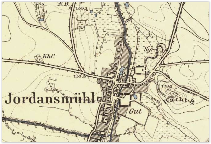 Wieś położona w gminie Jordanów Śląski powiatu wrocławskiego. Po raz pierwszy wzmiankowana w 1282 roku oraz w: 1370 roku(Jordansmoel). Wieś podzielona na dwa działy majątkowe. Jeden z majątków w 1471 należał do Ruprechta Tschesch, drugi z majątków należał do rodu von Schweinichen. W latach 1586-1591 wieś należała do rodu von Gregersdorff. Po wymarciu przedstawicieli rodu von Gregersdoff majątek w 1630 roku zakupił Sigismund von Pfeil und Klein-Ellguth. Po jego śmierci dobra w rękach wdowy, Ludmilly, z domu von Gregersdorff. W 1682 roku dobra zakupił Sebald von Saurma. W latach 1715-1742 dobra w posiadaniu rodu von Taubadel(Taupadel,Tupadel). W 1723 roku siedział tu Johann Christoph Herrmann von Taubadel. W 1759 roku właścicielem była Ursulla Sophie von Baudis, z domu von Taubadel. W 1760 dobra nabył major Alexander Christoph von Münchow. W 1761 roku majątek zakupił hrabia Hans Ferdinand von Sandreczky. W 1845 roku jeden z majątków posiadał hrabia Erdmann von Sandreczky-Sanbraschütz. Drugi był w rękach spadkobierców rodziny von Bahr. Hrabia Erdmann posiadał majątek do 1853 roku. Kolejnym był porucznik Gustav Karl Ludwig Schwartz. Od 1862 roku do 1945 roku dobra w posiadaniu rodu von Kriegsheim. W 1862 roku dobra zakupił Johann Karl Christian von Kriegsheim, który przekazał go swojemu synowi, Selarowi von Kriegsheim.